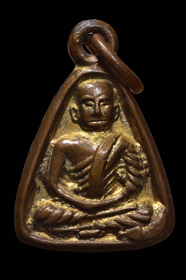 เหรียญพ่อแก่ วัดใหม่พิเรนทร์ รุ่นแรก บล็อกนิยม ปี 2513 เนื้อทองแดงกะไหล่ทอง