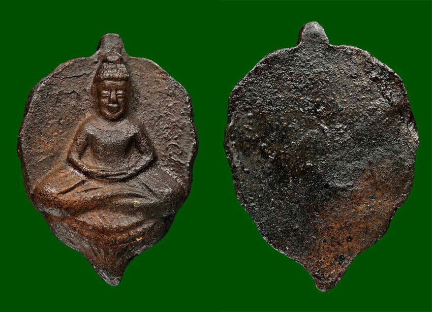 พระโพธิจักรพิมพ์ใบโพธิ์หลวงพ่อลี วัดอโศการาม จ.สมุทรปราการ ปี 2500 เนื้อดินเคลือบ