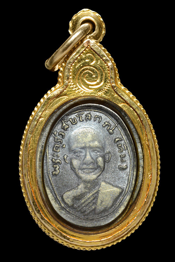 พระกลีบบัวหลวงพ่อทวด วัดช้างให้ รุน1 ปี2507 เนื้อทองเหลืองรมดำ ..(2)