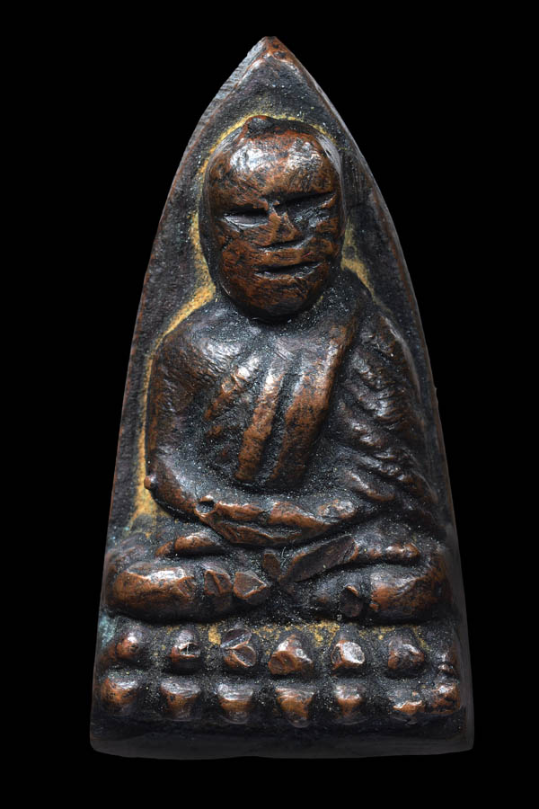 พระกลีบบัวหลวงพ่อทวด วัดช้างให้ รุน1 ปี2507 เนื้อทองเหลืองรมดำ ..(2)
