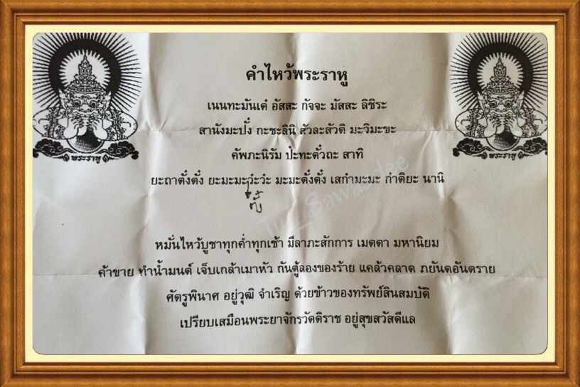 | | [ ชื่อพระ ] ราหูกะลาตาเดียว" ของ พระอาจารย์กฤษฎา วัดปงสนุกเหนือ | | [ รายละเอียด ] อีก ๑ สุดยอด กะเครื่องรางด้านหนุนดวง พลิกชะตา ของทางเหนือ "ราหูกะลาตาเดียว" ของ พระอาจารย์กฤษฎา วัดปงสนุกเหนือ ท่านได้สร้างกะลา ตามตำรา พระอาโนชัยธรรมจินดามุนี ราชครูแห่งเมืองละกอน(เจ้าคณะเมืองรูปแรกของจังหวัดลำปาง) ผู้เป็นอาจารย์ของครูบานันตา นันโท วัดทุ่งม่านใต้ ซึ่งกะลาทุกแว่น นั้นแกะจากกะลาตาเดียว ด้วยมือทีละองค์ลงรัก,ทอง,ชาด ตามตำราโบราณ และจารอักขระเรียกรูปเรียกนามด้วยตัวพระอาจารย์เองทุกแว่น ท่านใช้เวลาเตรียมในการจัดสร้าง กะลาชุดนี้กว่า ๕ ปี จนสร้างออกมาให้ศิษย์ และผู้มีความเชื่อ/ ศรัทธา ได้บูชา ซึ่งต่างคนที่นำไปบูชาแล้วสัมฤทธิ์ผล จึงกลับมาบูชาจนหมด ซึ่งใครมีต่างหวงแหนไม่มีของหมุนเวียน ทั้งวัตถุมงคลของท่านไม่เคยโฆษณา/ โปรโมท แต่กลับมีคนต้องการนำไปบูชา ลูกศิษย์ลูกหาท่านล้วนเป็นคนใหญ่ คนโต ข้าราชการตำแหน่งสูงๆ ทั้งสิ้น แสดงถึงท่านสร้างเครื่องราง ได้เข้มขลัง จึงมีแต่คนศรัทธามาเป็นศิษย์ฯ ในการสร้างกะลาราหู นั้น ท่านจะทำในฤกษ์ยาม (ราหูอมจันทร์) รวมถึงต้องแกะจากกะลาตาเดียว จึงมีจำนวนจัดสร้างแต่ละครั้งไม่มาก เป็นของหายากในที่สุด | [ ราคา ] ฿9 [ สถานะ ] โชว์พระ