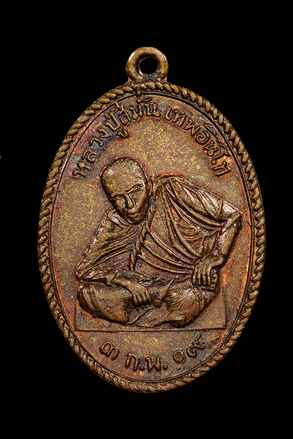 เหรียญรุ่นแรก พ่อท่านกลาย วัดห้วยหลาด ปี 2554 ทองแดงรมดำ (เหรียญแชมป์งานสุราษฎร์ฯ)
