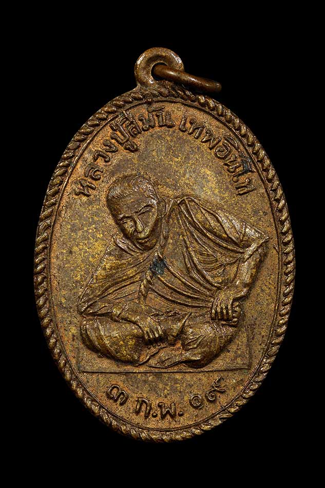 เหรียญรุ่นแรก พ่อท่านกลาย วัดห้วยหลาด ปี 2554 ทองแดงรมดำ (เหรียญแชมป์งานสุราษฎร์ฯ)