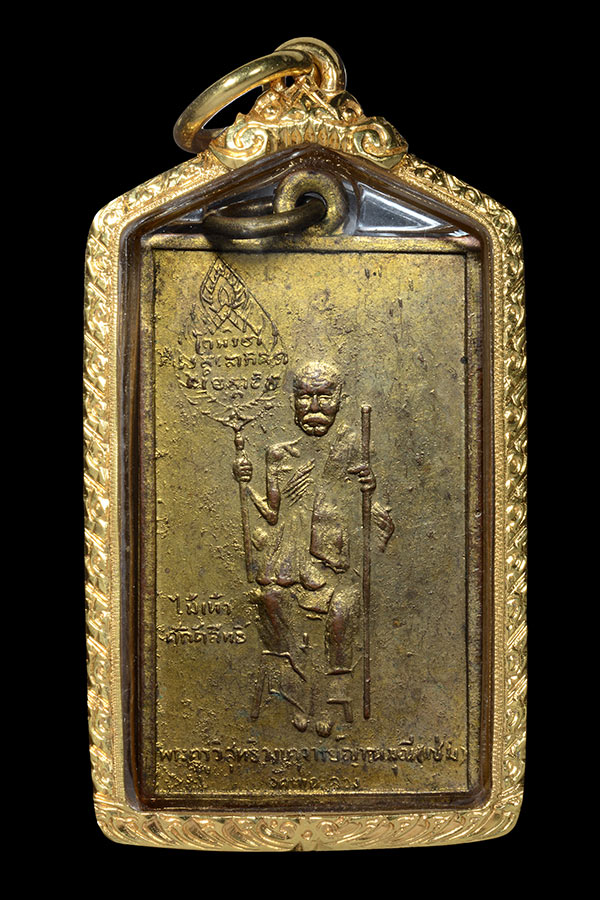 เหรียญหลวงพ่อแช่ม วัดฉลอง ภูเก็ต ปี2484 พิมพ์สี่เหลี่ยมถือพัดยศ.""กะไหล่ทอง""