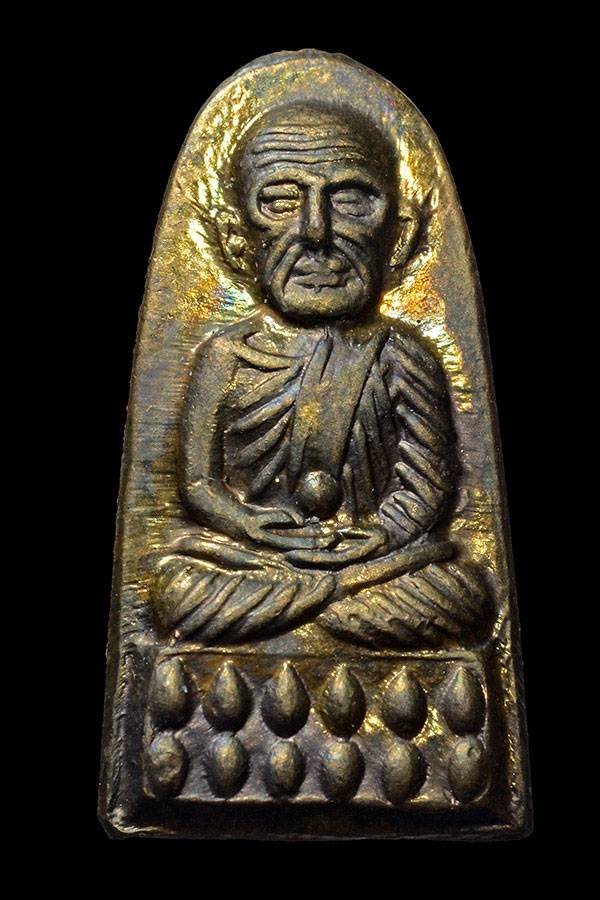 พระกลีบบัวหลวงพ่อทวด วัดช้างให้ รุน1 ปี2507 เนื้อทองเหลืองรมดำ..(4)