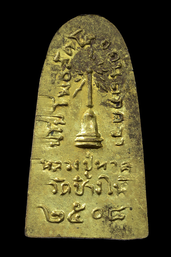 หลวงปู่ทวดวัดช้างให้ เนื้อทองแดงกะไหล่ทอง "ซุ้มกอจิ๋ว" หลังยันต์