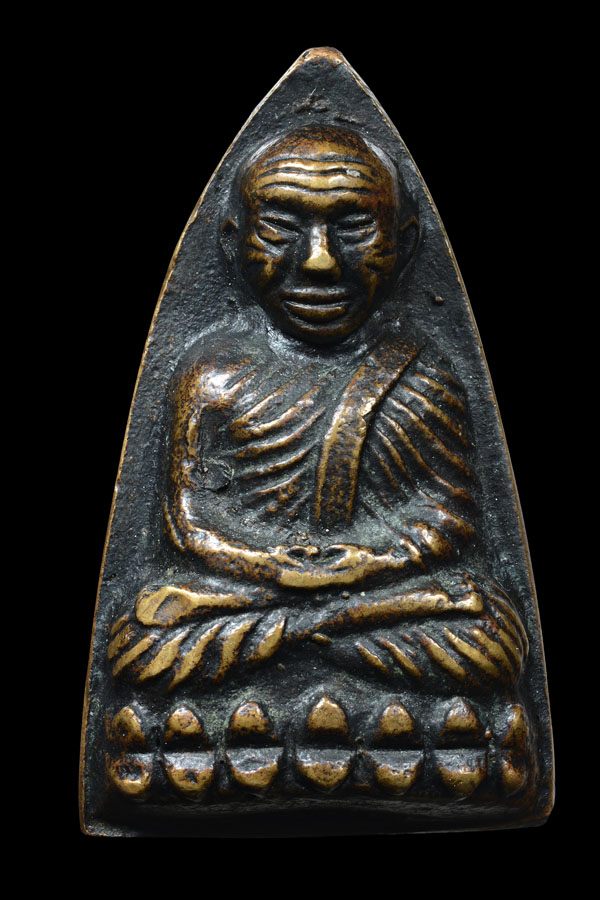 พระกลีบบัวหลวงพ่อทวด วัดช้างให้ รุน1 ปี2507 เนื้อทองเหลืองรมดำ ..(2)