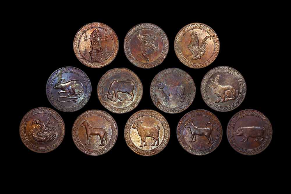 เหรียญนามปี""12 เหรียญ ""รุ่นแรก""เนื้อทองแดง นิยม ๕ ขีด