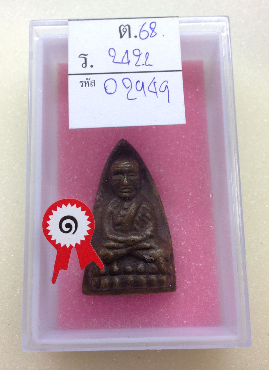พระหลวงพ่อทวด พิมพ์กลีบบัว วัดช้างให้ ปี2506 หลังหนังสือห้าแถว "บล็อกแข้งสั้น"