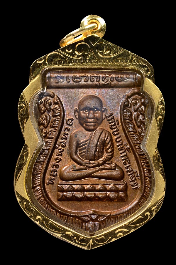 พระกลีบบัวหลวงพ่อทวด วัดช้างให้ รุน1 ปี2507 เนื้อทองเหลืองรมดำ..(1)