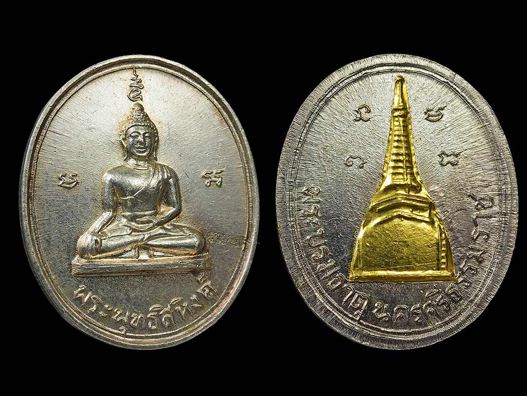 เหรียญพุทธิสิหิงค์นครศรีฯ เนื้อเงินหลังบุทองคำ