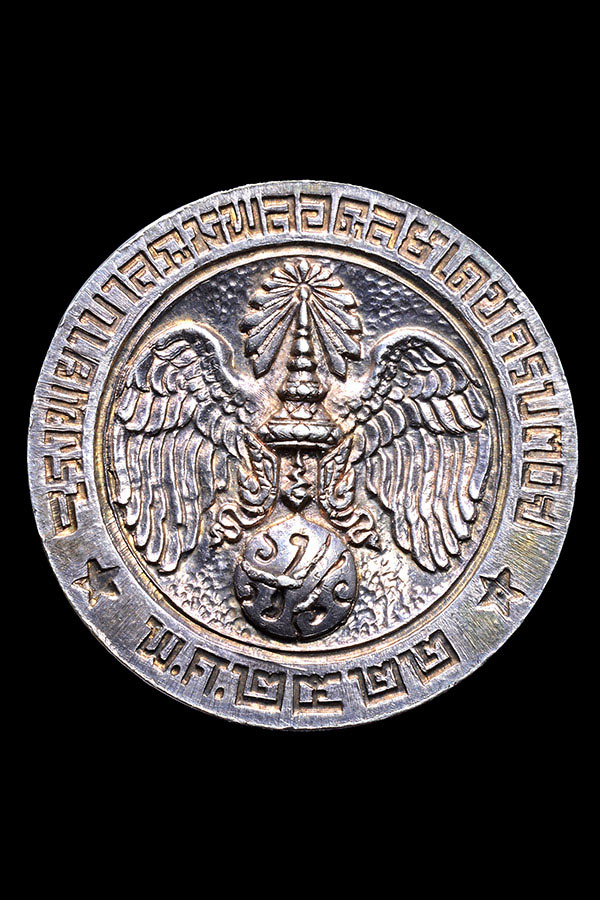 เหรียญนั่งพาน หลวงพ่อคูณ วัดบ้านไร่ รุ่นเมตตาอุปถัมถ์ วัดบ้านคลอง ปี 2537 เนื้อเงิน เลข 2516