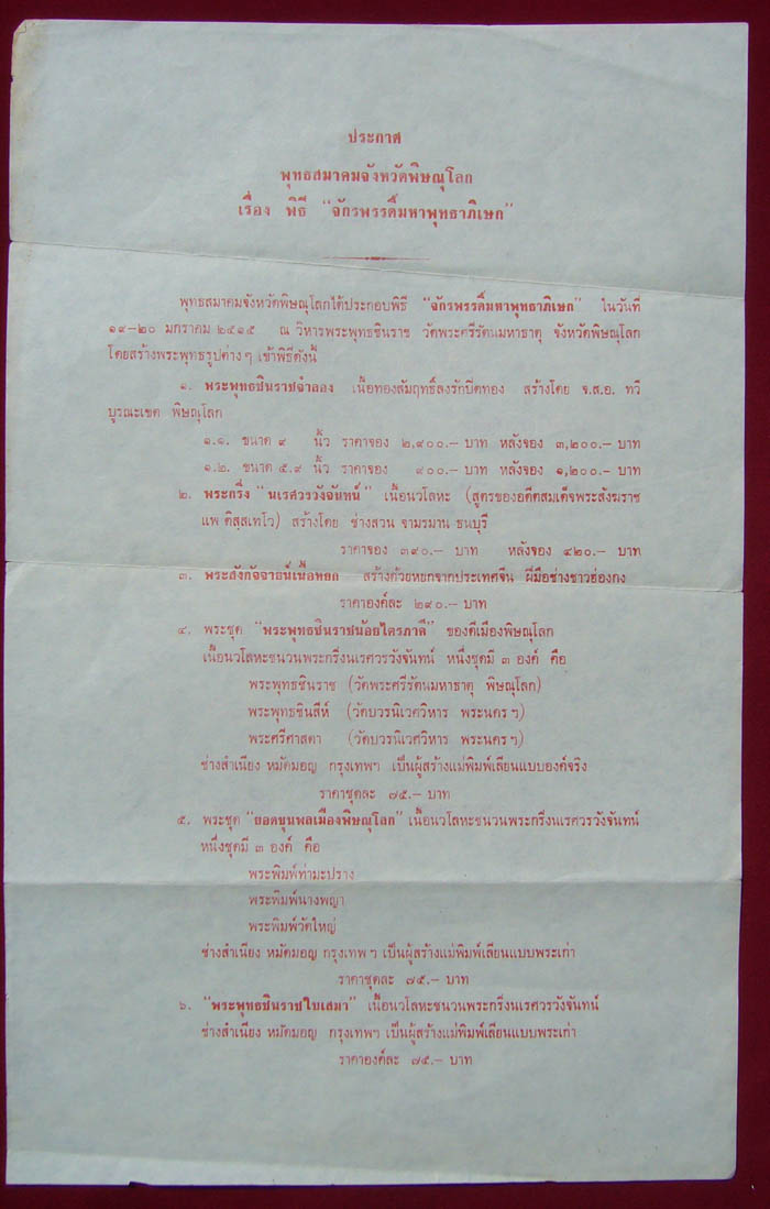 [ รายละเอียด ] พระสังกัจจจายน์ เนื้อหยกจากประเทศจีน แกะโดยช่างชาวฮ่องกง หยก(ชมพู)กระเช้าทองคำแท้ พิธีจักรพรรดิ์ ปี 2515 จ.พิษณุโลก พิธีใหญ่มากในยุคสมัยนั้น ดังรายนาม.- คณาจารย์ปลุกเสกพระเครื่องวัตถุมงคลพิธีจักรพรรดิ์ วัดพระศรีรัตนมหาธาตุ จ.พิษณุโลก 20 มกราคม พ.ศ.2515 พิธีจักรพรรดิ์ 20 มกราคม พ.ศ.2515 จัดขึ้น ณ วิหารพระพุทธชินราช วัดพระศรีรัตนมหาธาตุ วรมหาวิหาร (วัดใหญ่) จังหวัดพิษณุโลก เจ้าพิธี พระอาจารย์ผ่อง จินดา วัดจักรวรรดิราชาวาส กรุงเทพมหานคร และ อาจารย์เทพย์ สาริกบุตร ประธานฝ่ายสงฆ์ สมเด็จพระมหาวีรวงศ์ (พิมพ์ ธมฺมธโร) ปฏิบัติหน้าที่แทนสมเด็จพระอริยวงศาคตญาณ สมเด็จพระสังฆราช (ปุ่น ปุณฺณสิริมหาเถร) เป็นประธานจุดเทียนชัย ประธานฝ่ายฆราวาส ศาสตราจารย์สัญญา ธรรมศักดิ์ นายกพุทธสมาคมแห่งประเทศไทย ในพระบรมราชูปถัมภ์ เป็นประธานในพิธีจุดเทียนบูชาพระรัตนตรัย ประธานฝ่ายสงฆ์ดับเทียนชัย พระพิษณุบุราจารย์ เจ้าอาวาสวัดพระศรีรัตนมหาธาตุ วรมหาวิหาร พิษณุโลก ประธานบริกรรมปลุกเสก พระครูศรีพรหมโสภิต (หลวงพ่อแพ) วัดพิกุลทอง จ.สิงห์บุรี พระคณาจารย์นั่งปรกปลุกเสก 109 รูป ดังรายนามด้านล่างนี้ พระครูวิริยะโสภิต (หลวงพ่อทอง) วัดพระปรางค์ จ.สิงห์บุรี พระราชธรรมมาภรณ์ (หลวงพ่อเงิน) วัดดอนยายหอม จ.นครปฐม พระครูจันทรโสภณ (หลวงพ่อนาค) วัดทัศนารุณสุนทริการาม กรุงเทพ พระครูญาณวิลาศ (หลวงพ่อแดง) วัดเขาบันไดอิฐ จ.เพชรบุรี พระครูภาวนาณุโยค (หลวงพ่อหอม) วัดชากหมาก จ.ระยอง หลวงพ่อสุข วัดโพธิ์ทรายทอง จ.บุรีรัมย์ พระครูวิจิตนชัยการ (หลวงพ่อสด) วัดหางน้ำสาคร จ.ชัยนาท พระครูนนทกิจวิมล (หลวงพ่อชื่น) วัดตำหนักเหนือ จ.นนทบุรี พระครูประดิษฐ์นวการ (หลวงพ่อบุญ) วัดวังมะนาว จ.ราชบุรี พระครูสุตาธิการี (หลวงพ่ออยู่) วัดใหม่หนองพะองค์ จ.สมุทรสาคร พระครูธรรมสาคร (หลวงพ่อกรับ) วัดโกรกกราก จ.สมุทรสาคร พระครูปัญญาโชติ (หลวงพ่อเจริญ) วัดทองนพคุณ จ.เพชรบุรี พระครูประสาทวรคุณ (หลวงพ่อพริ้ง) วัดโบสถ์โก่งธนู จ.ลพบุรี หลวงพ่อชื่น วัดคุ้งท่าเลา จ.ลพบุรี พระครูสนิทวิทยการ วัดท่าโขลง จ.ลพบุรี พระครูปิยธรรมภูสิต (หลวงพ่อคำ) วัดบำรุงธรรม จ.สระบุรี พระครูกิตพิจารณ์ (หลวงพ่อผัน) วัดราษฎร์เจริญ จ.สระบุรี พระครูพุทธฉายาภิบาล วัดพระพุทธฉาย จ.สระบุรี พระครูสุวรรณวุฒาจารย์ (หลวงพ่อมุ่ย) วัดดอนไร่ จ.สุพรรณบุรี พระวินัยรักขิตาวันมุนี (หลวงพ่อถิร) วัดป่าเลไลย์ จ.สุพรรณบุรี พระวิบูลเมธาจารย์ (หลวงพ่อเก็บ) วัดดอนเจดีย์ จ.สุพรรณบุรี พระครูอภัยภาดาทร (หลวงพ่อขอม) วัดไผ่โรงวัว จ.สุพรรณบุรี พระครูกิตตินน