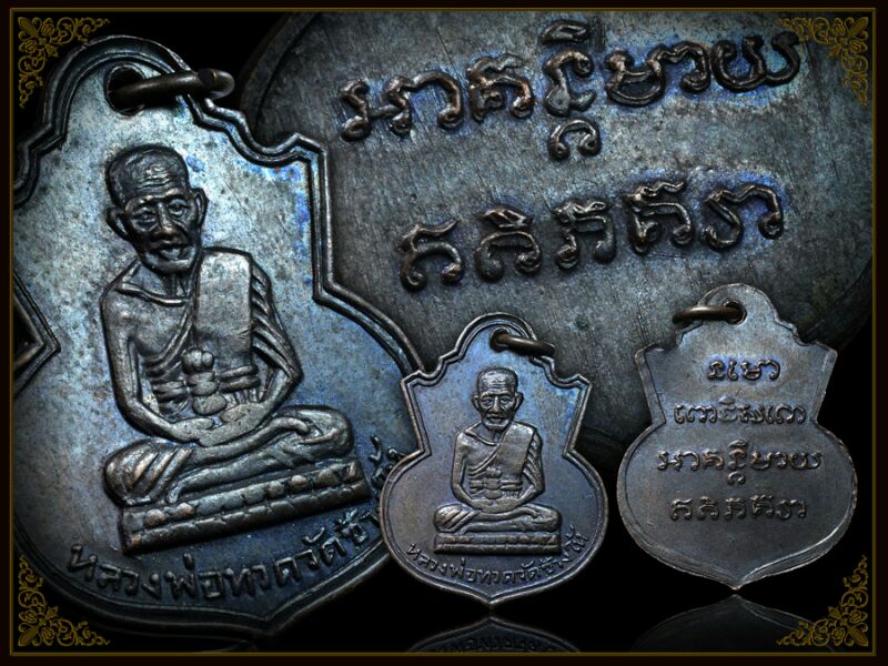พระกลีบบัวหลวงพ่อทวด วัดช้างให้ รุน1 ปี2507 เนื้อทองเหลืองรมดำ ..(2)
