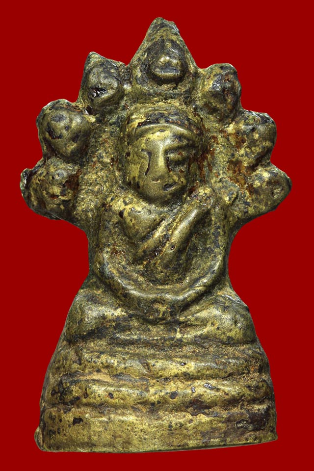 พระกริ่งนาคปรกหล่อโบราณ เนื้อทองเหลืองโบราณ