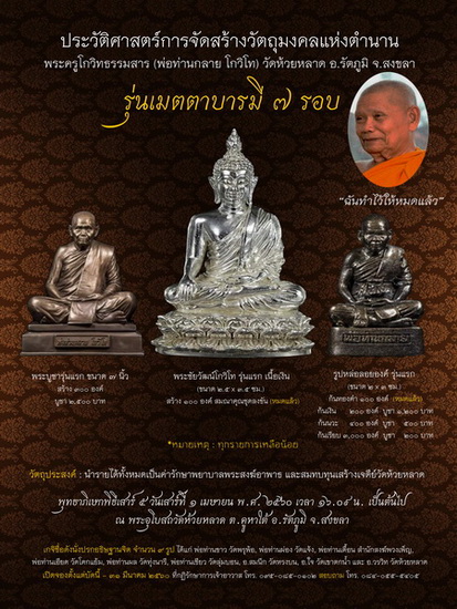 ประวัติการจัดสร้างวัตถุมงคลพ่อท่านกลาย วัดห้วยหลาด "รุ่นเมตตาบารมี ๗ รอบ"