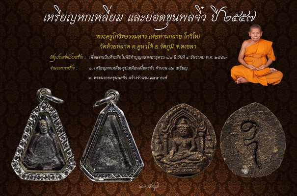 [ รายละเอียด ] เหรียญหกเหลี่ยม และยอดขุนพลจิ๋ว พ่อท่านกลาย วัดห้วยหลาด ปี ๒๕๕๗