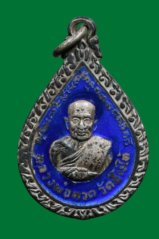 เหรียญหยดน้ำ หลวงพ่อทวด วัดช้างให้ เนื้อเงินลงยาสีน้ำเงิน ปี 2522 ..