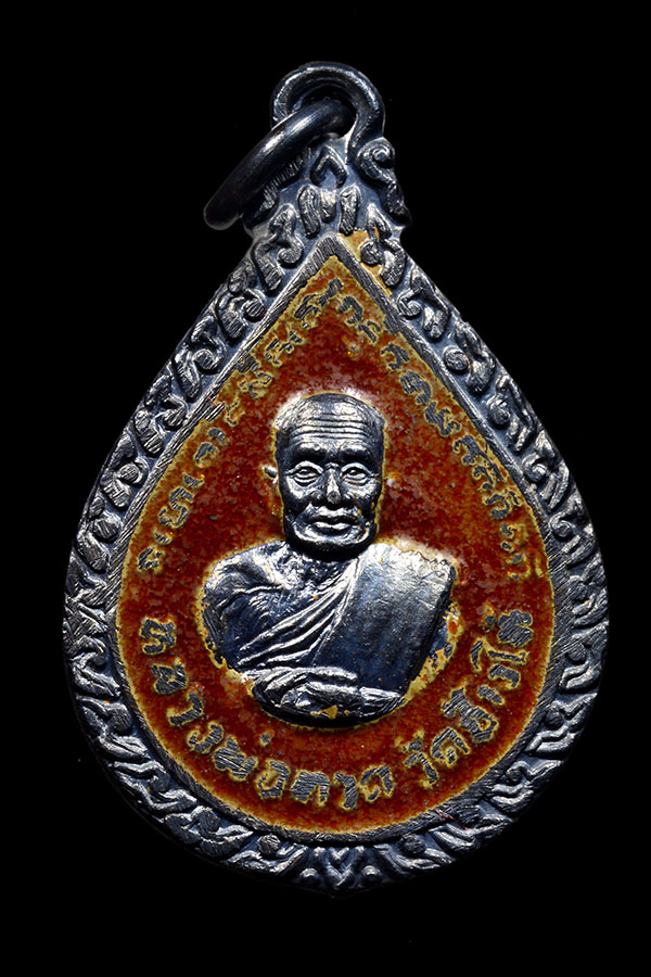 หลวงพ่อทวด วัดช้างให้ พิมพ์กลีบบัว  เนื้อทองเหลืองรมดำ รุ่น ร.ศ.200 ปี 2525.