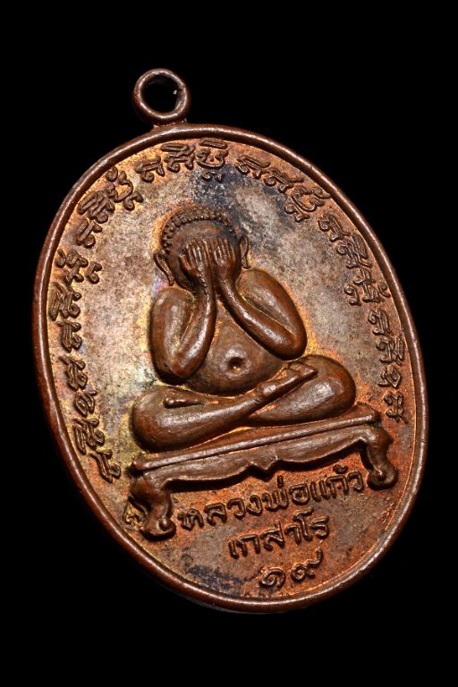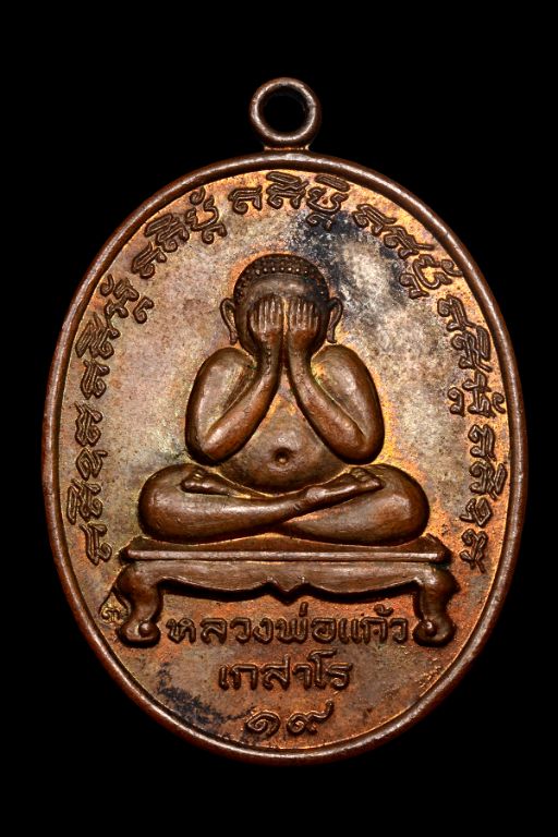 [ ชื่อพระ ] เหรียญปิดตาหลวงปู่แก้ว เกสาโร วัดละหารไร่ จ.ระยอง เนื้อทองแดง ปี2519 ตอกโค๊ต ๙๕ กรรมการ