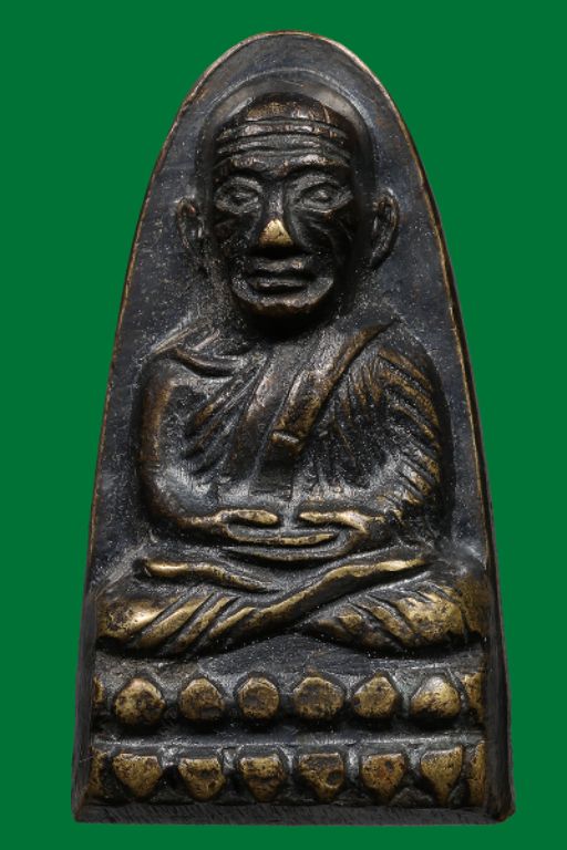 พระกลีบบัวหลวงพ่อทวด วัดช้างให้ รุน1 ปี2507 เนื้อทองเหลืองรมดำ ..(2)