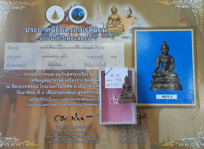 พระพุทธรูปบูชา พระพุทธสิริวัฒน์ อ.ศรีเงิน วัดดอนศาลา จ.พัทลุง ปี2534(องค์พิเศษ)