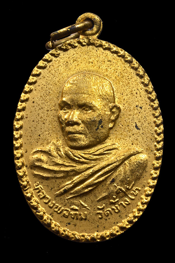 เหรียญอาจารย์ทิม วัดช้างให้ รุ่นแรก หันข้างครึ่งองค์ เนื้อทองแดงกะไหล่ทอง ปี 2508 จ.ปัตตานี ..(2)