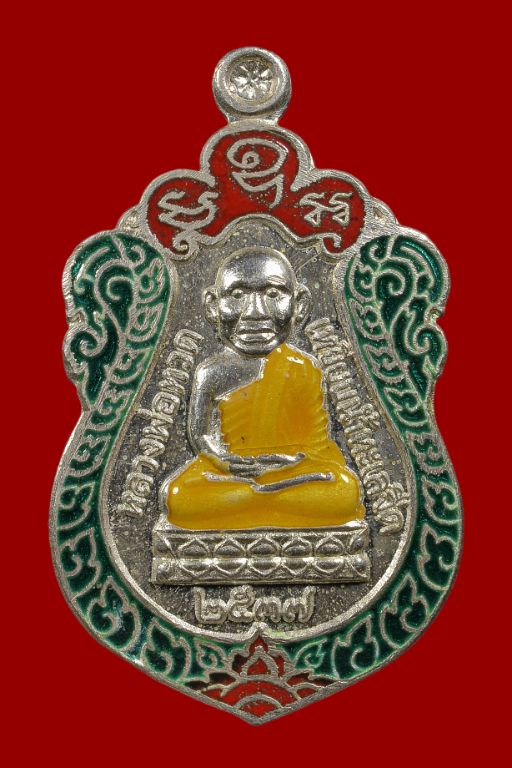 [ ชื่อพระ ] เหรียญหัวโตหลวงพ่อทวด รุ่นสร้างวิหาร อาจารย์นอง ปี 2537 เนื้อเงินลงยา เขียว-แดง