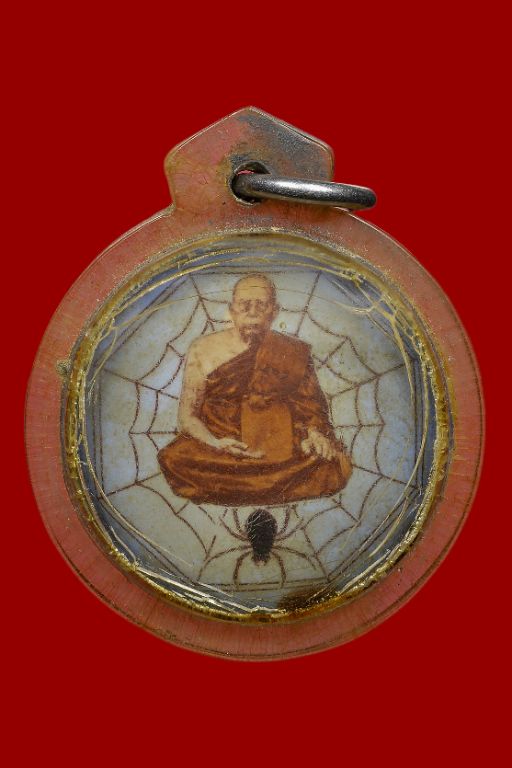 [ ชื่อพระ ] ล็อคเก็ตแมงมุม เรียกทรัพย์ หลวงปู่สุภา ฉากสีฟ้า
