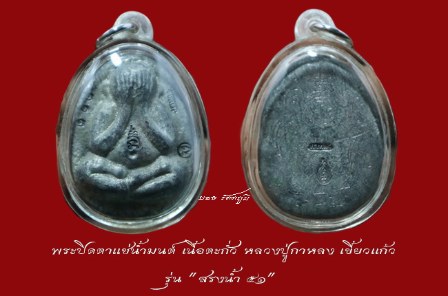[ รายละเอียด ] พระปิดตาแช่น้ำมนต์ เนื้อตะกั่ว หลวงปู่กาหลง เขี้ยวแก้ว "รุ่นสรงน้ำ ๕๑" ที่ระลึกพิธีสรงน้ำในวันที่ ๑๕ เมษายน พ.ศ. ๒๕๕๑ จำนวนการสร้าง ๒,๙๙๙ องค์