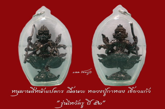 [ ชื่อพระ ] หนุมานสี่หน้าแปดกร เนื้อนวะ หลวงปู่กาหลง เขี้ยวแก้ว "รุ่นไหว้ครู ปี ๕๒"