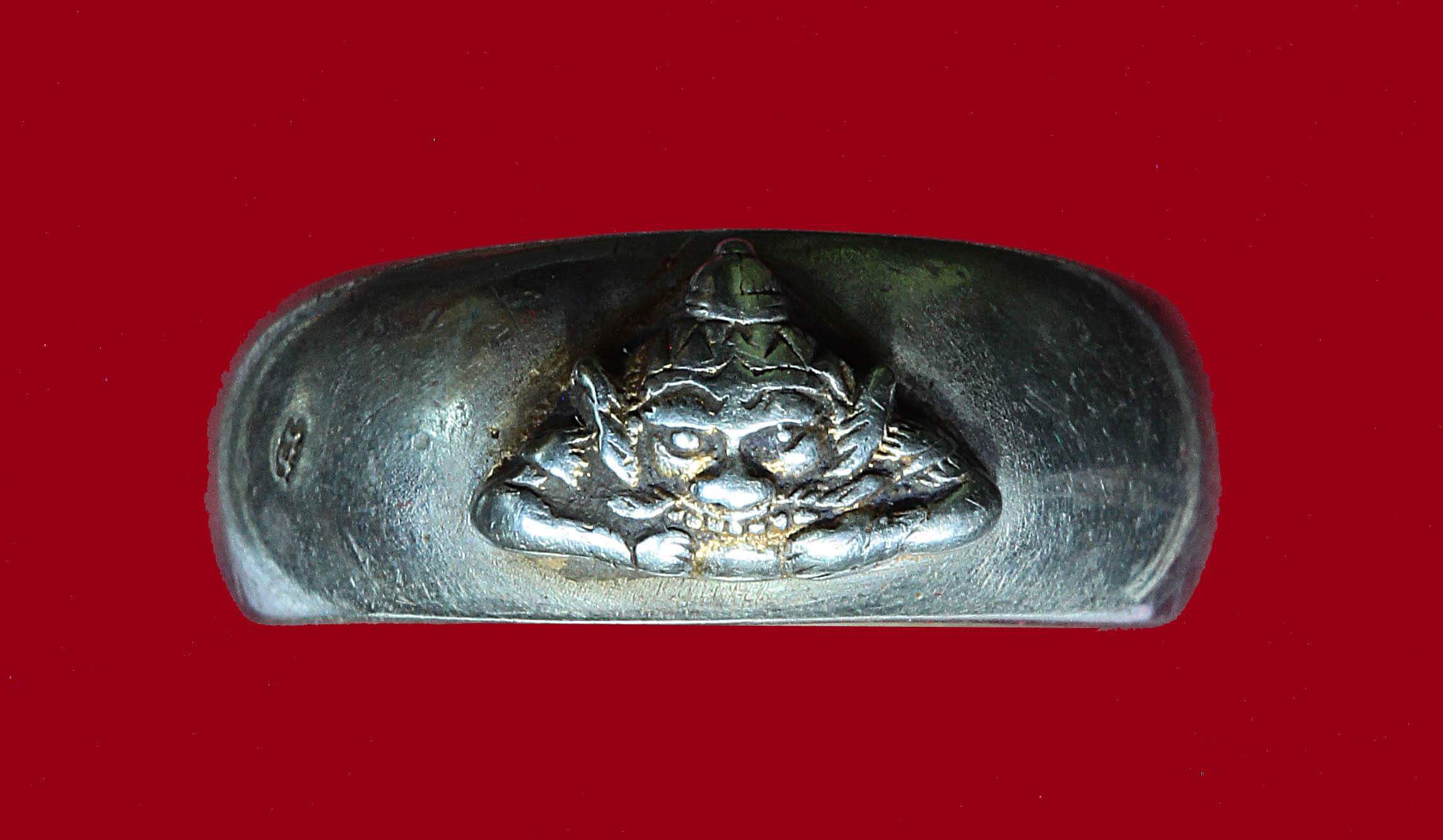 [ ชื่อพระ ] แหวนพิรอดหลบในหัวพระราหู อ.ประจวบ คงเหลือ เนื้อเงิน