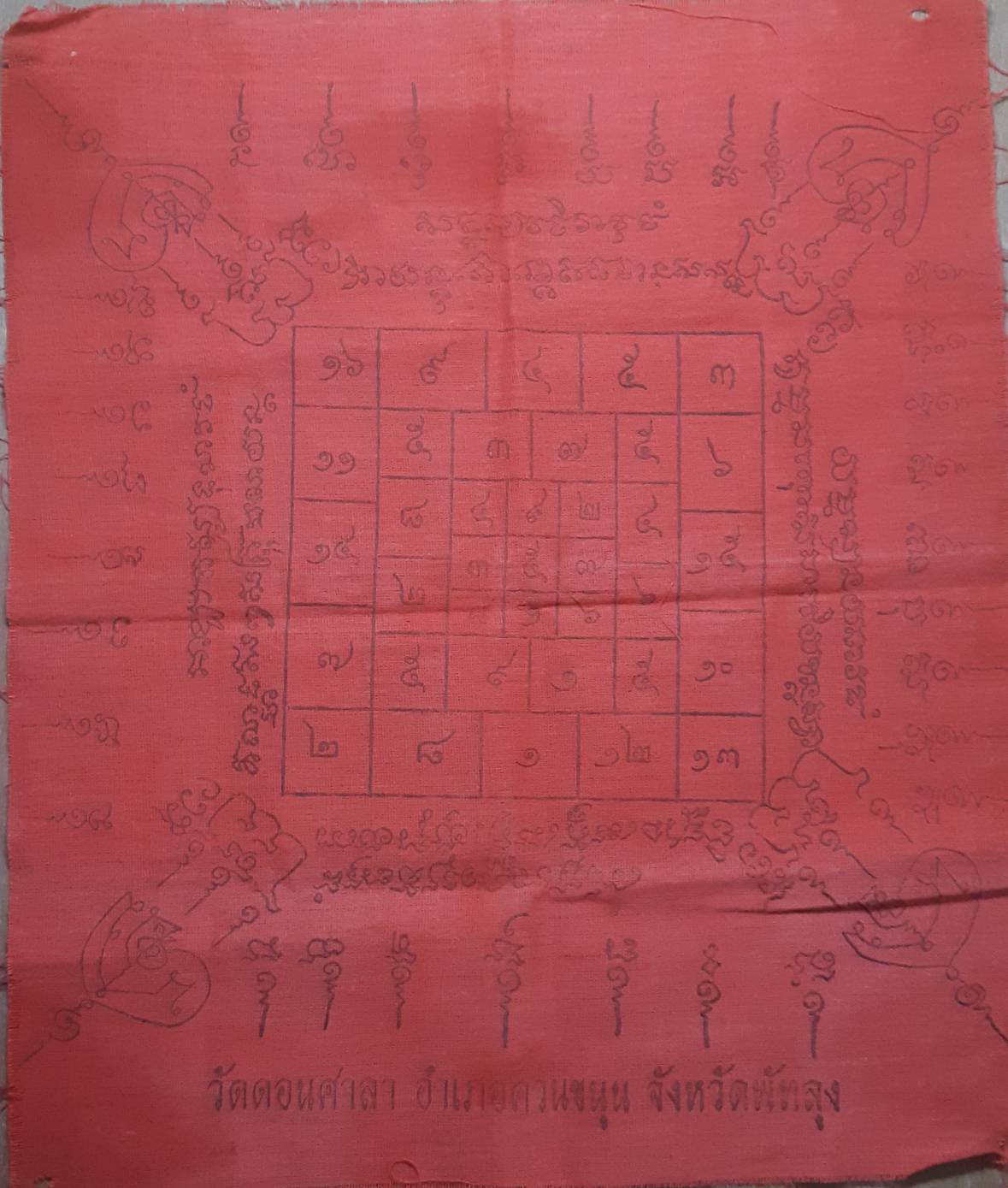 [ ชื่อพระ ] ผ้ายันต์โสฬสมหามงคล อ.ศรีเงิน วัดดอนศาลา จ. พัทลุง(ผ้าสกรีนสีแดง)2