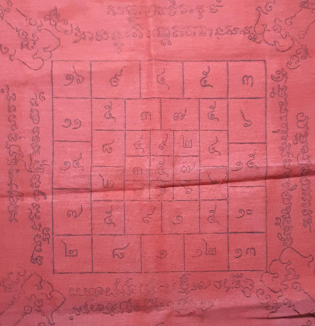 ผ้ายันต์โสฬสมหามงคล อ.ศรีเงิน วัดดอนศาลา จ. พัทลุง(ผ้าสกรีนสีแดง)2