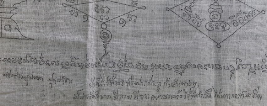 ผ้ายันต์อาเซียน อ.ปลอด วัดหัวป่า ยุคแรกครับ ผ้าดิบ248กว่า ผ้าดิบเก่าเดิม