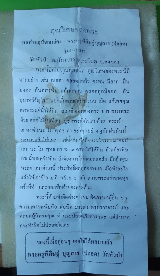 กระดาษใบฝอยคาถาของ อ.ปลอด วัดหัวป่า เขียนด้วยลายมือท่านเอง