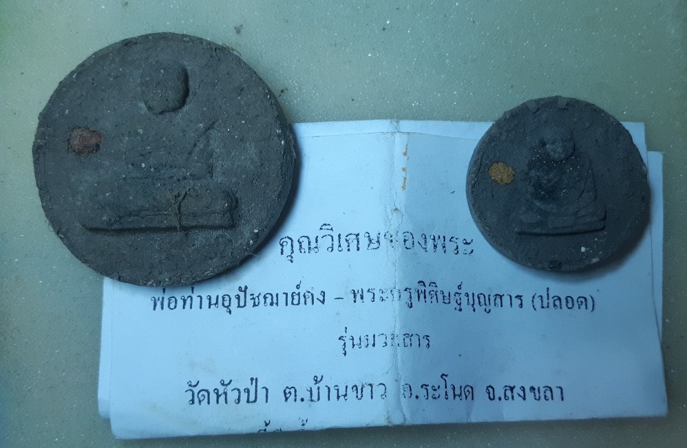 พระพิมพ์ถวาย อ.คง อ.ปลอด วัดหัวป่า เนื้อว่ายา มีหน้ามีตา พระยิ้ม(เลี่ยมเงินทำมือ)