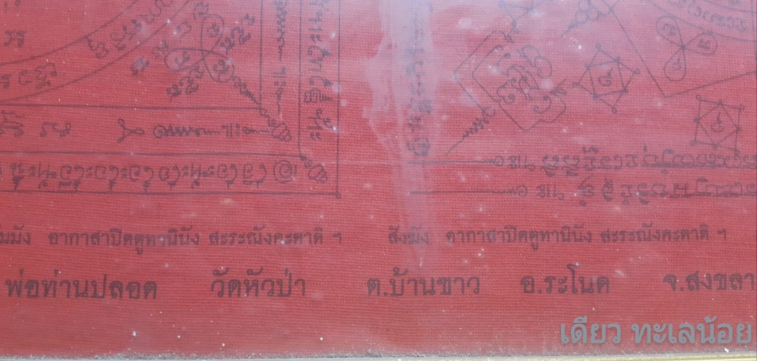 [ รายละเอียด ] ผ้ายันต์มหาอุด อ.ปลอด วัดหัวป่า ผ้าแดงสภาพสวยเดิมผืนนี้เขียนว่า พ่อท่านปลอด วัดหัวป่า อ.ระโนด จ.สงขลา ผ้ายันต์ผืนนี้สภาพสวยสมบูรณ์มาก และพิเศษผืนนี้มีติดป้ายชื่อมาแต่เดิมๆจากวัดเขียนว่า"ผ้ายันต์มหาอุต อ.ปลอดวัดห้วป่า "ในลักษณะนี้ที่ติดป้ายชื่อแบบนี้หาได้ยากมากๆครับ สมัยก่อนนั้นคุณลุงนิตย์ ศรีวิเชียร เป็นลุงของผมเอง ซึ่งท่านเป็นศิษย์ใกล้ชิดท่านปลอด เลยครับ ลุงนิตย์ได้บอกกล่าวเอาไว้ว่า สมัยแต่แรกนั้น ป้ายติดชื่อที่พิมพ์ลงในกระดาษต่างๆนั้นมีบรรดาลูกศิษย์ใกล้ชิดของท่านปลอด ที่อยุ่กทม.ทางศิษย์ได้พิมพ์ชื่อระบุไว้ว่าเป็นวัตถุเป็นมงคลประเภทใดและบางอย่างนั้นเป็นพิมพ์เป็นใบฝอยระบุวิธีการใช้ที่ได้จากอาจารย์ปลอด ก็มี ฝอยพิมพ์ไว้แจกกันคู่กับพระเช่นพระพิมพ์ถวายอาจารยย์คง พระพิมพ์แม่นางกวัก พระอาจารย์ปลอดก็ได้ไห้คณะศิษย์นำมาพิมพ์เป็นใบฝอยแจกไห้ชาวบ้านทั่วๆไปไห้ใช้กันอย่างถูกวิธี เพราะว่าพุทธคุณของพระและเครื่องรางแต่ละอย่างนั้นแตกต่างกัน ถ้าเป็นเครื่องรางของอ.ปลอดนั้นใบฝอยเครื่องรางตะกรุดลูกอมว่านต่างๆก็มีนะครับแต่มีน้อยครับ ส่วนใหญ่จะเป็นแค่ชื่อที่พิมพ์ลงในกระดาษและติดระบุไว้เพื่อสาใารถยืนยันได้อย่างเช่น ลูกอมว่านยา ลูกอมข้าวก้นบาตร ลูกอมผงพุทธคุณ ลูกอมผงวิเศษทาบลอนทอง(ผงน้ำมัน) ลูกอมว่านยาผสมชันโรง ลูกอม ตะกรุดทิศมร(จันทร์เพ็ญ) ตะกรุดมหาลาภ ตะกรุดตรีนิสิงเห สีผึ้ง ผ้ายันต์มหาอุด ผ้ายันต์แม่นางกวักมหาลาภ และสร้อยประคำว่านยา108 เครื่องที่กล่าวมานั้นทางคณะศิษย์ก็ได้พิมพ์ใส่กระดาษสาและได้ระบุชื่อไว้ด้วยเช่นกันในแต่ละประเภท แต่พบเจอได้น้อยเพราะเป็นป้ายชื่อในการดาษขนาดเล็กๆห่อถุงคู่กับวัตถุมงคลนั้นๆหรือติดไว้เลยก็มี คือสมัยก่อนการเก็บรักษาป้ายชื่อเล็กๆไว้ไห้อยุ่คู่วัตถุมงคลนั้นยากมากครับ ส่วนใหญ่ชาวบ้านในยุคนั้นจะเอาใช้งานกันเป็นส่วนใหญ่ก็เลยไม่ได้สนใจเรื่องกระดาษป้ายชื่อวัตถุเท่าไหร่กันครับ นอกจากว่าเจอตามบ้านๆอยุ่ในถุงเก่าเดิมๆยังไม่เปิดออกมาใช้ ก็จะมีกระดาษที่พิมพ์ชื่อติดไว้ในถุง กระดาษต้องเป็นกระดาษสาสีน้ำตาลเก่าและพิมพ์ด้วยเครื่องพิมพ์ดีดในยุคก่อนเท่านั้น แต่เครื่องรางของท่านปลอดที่ไม่ได้ติดชื่อไม่ติดกระดาษอะไรก็มีเช่นกันครับ แต่ต้องดูที่มาไห้ดีๆครับ เพราะว่า ตะกรุดและลูกอมว่านยาต่างๆนั้น มีสร้างด้วยกันหลายยุคหลายวัดหลายสำนักมาก ยิ่งเป็นตะกรุดโทนเปลือยยิ่งบอกได้ยากมากๆ ลูกอมว่านยาก็มีหลายโซนเนื้อ มีสร้างหลายๆที่คล้