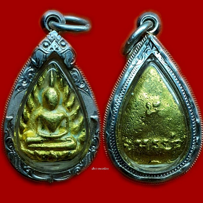 พระกลีบบัวนะมหามงคลมหาลาภ อ.ศรีเงิน วัดดอนศาลา เนื้อทองมหาสัตตะโลหะ ปี2525 (เลี่ยมเงิน)