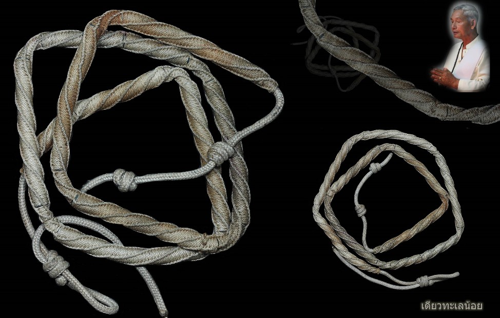 [ รายละเอียด ] ตะกรุดคาดเอว9ดอก ประจำตัว อ.ประจวบ คงเหลือ(เส้นประจำกายของท่านเลยครับ1ใน3เส้นเป็นวัตถุมงคลคู่ชีวิตท่านเลย ตะกรุดของ อ.ประจวบ คงเหลือ ฆราวาสสำนักเขาอ้อ ท่านสร้าง9ดอก เป็นตะกรุดที่ท่านสร้างไว้แจกศิษย์ใกล้ชิดไว้ไม่มากนัก ตะกรุด9ดอกนั้นท่านบอกว่าตะกรุดตามตำราเขาอ้อที่ท่านสร้างนั้น 7ดอก เป็นมหาอุด แคล้วคลาด ท่านเพิ่มตะกรุดมหานิยม 1ดอก มหาลาภ1ดอก เป็น9ดอก ในยุคต้นๆนั้นท่านถักเองทุกเส้น เส้นนี้เป็นของที่ทรงคุณค่ายิ่ง เพราะเป็นตะกรุดที่ทำทำไว้ใช้ประจำตัวเอง เส้นนี้ท่านทำใส่ไว้ตั้งแต่ปี2กว่า ท่านถอดไห้ศิษย์คนนึงที่กำลังจะถูกตามยิง ศิษย์คนนี้ท่านนั้นรักมาก ท่านเห็นทีท่าจะไม่ปลอดภัยท่านเมตตตาจึงถอดตะกรุดคาดเอวประจำตัวเส้นนี้ไว้ไห้ติดตัวราวในปี30กว่าๆ ตะกรุดนี้ก็ผ่านพิธีที่ท่านเศกมาแล้วนั้นนับครั้งไม่ถ้วน ***ผมติดตามตะกรุดเส้นนี้อยุ่หลายปีมาก กว่าจะได้มาครอบครอบต้องยอมเสียสละพระมหาว่าน อ.เอียด ราคาหลายหมื่นไป1องค์ เพื่อที่จะได้ตะกรุดเส้นนี้มาครอง ลูกศิษย์คนนี้บอกว่าไห้ไปขออนุญาติอาจารย์ประจวบก่อน ผมก็นำตะกรุดเส้นนี้ไปไห้ท่านดู ท่านก็พูดขึ้นมาว่า นี้มันของเราไปได้จากไหน ผมก็บอกท่านตามเป็นเป็นจริง ว่าศิษย์รักของอาจารย์ได้มอบมาไห้ผมรักษาผมจึงมานำมาขออนุญาติอาจารย์ก่อน ท่านก็ได้เล่าที่มาที่ไปของตะกรุดเส้นนี้ของท่านเอง...กรณีตะกรุดทั่วไปของ อ.ประจวบ นั้น ท่านสร้างตะกรุดลักษณะนี้ไว้ไห้ศิษย์ก็หลายเส้นครับในยุคต้นๆ *เเต่เส้นนี้ที่มีความพิเศษก็คือ เป็นของท่านประจำกายของท่านที่ท่านทำไว้ใช้ส่วนตัวเลยท่านทำไว้ใช้ส่วนตัวแค่3เส้นเท่านนั้น เส้นที่1 อยุ่ที่ลูกชายของท่าน เส้นที่2คือเส้นนี้ ผมครอบครอง เส้นที่3 อยุ่ที่ศิษย์ใกล้ชิดท่าน ปัจจุบันท่านไม่ค่อยได้สร้างสักเท่าไหร่ เส้นนี้รักมากและหวงมาก ขอโชว์อย่างเดียวครับ