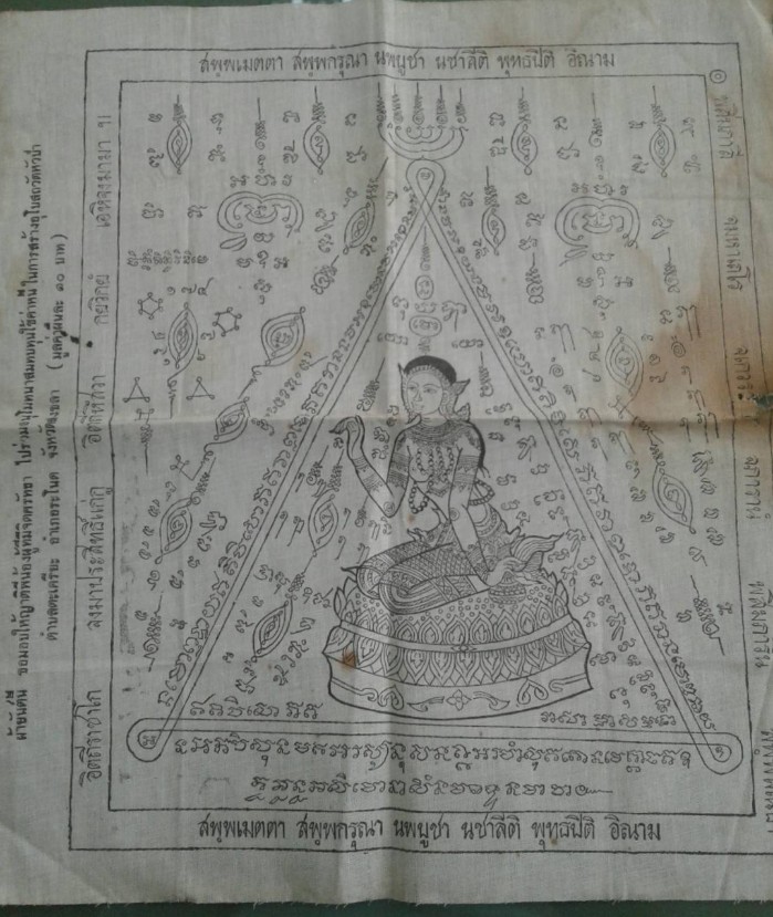 ผ้ายันต์แม่นางกวัก อ.ปลอด วัดหัวป่า ต.ตะเคร๊ยะ ผ้าจีวรยุคต้นๆ(1)