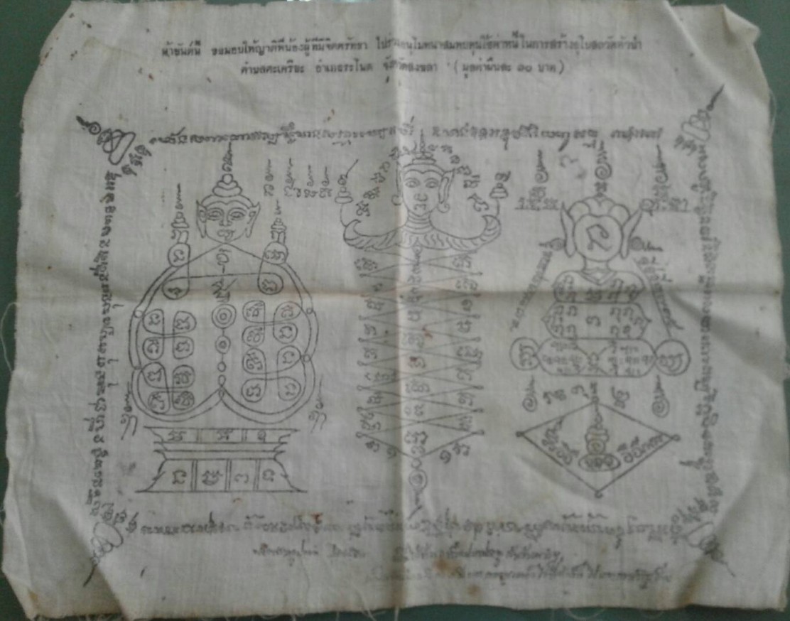 ผ้ายันต์ อ.ปลอด วัดหัวป่า ยุคต้นๆ (สร้างอุโบสถมูลค่าผืนละ10บาท)