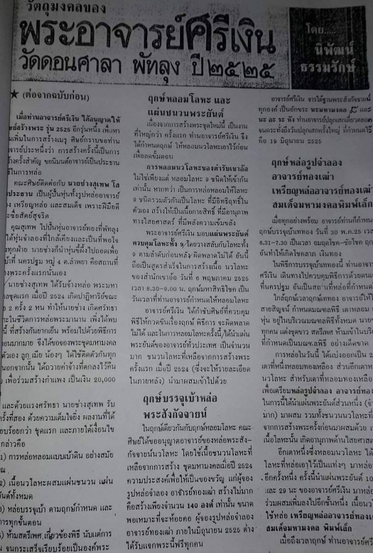 พระพุทธรูปบูชา พระพุทธสิริวัฒน์ อ.ศรีเงิน วัดดอนศาลา จ.พัทลุง ปี2534(องค์พิเศษ)