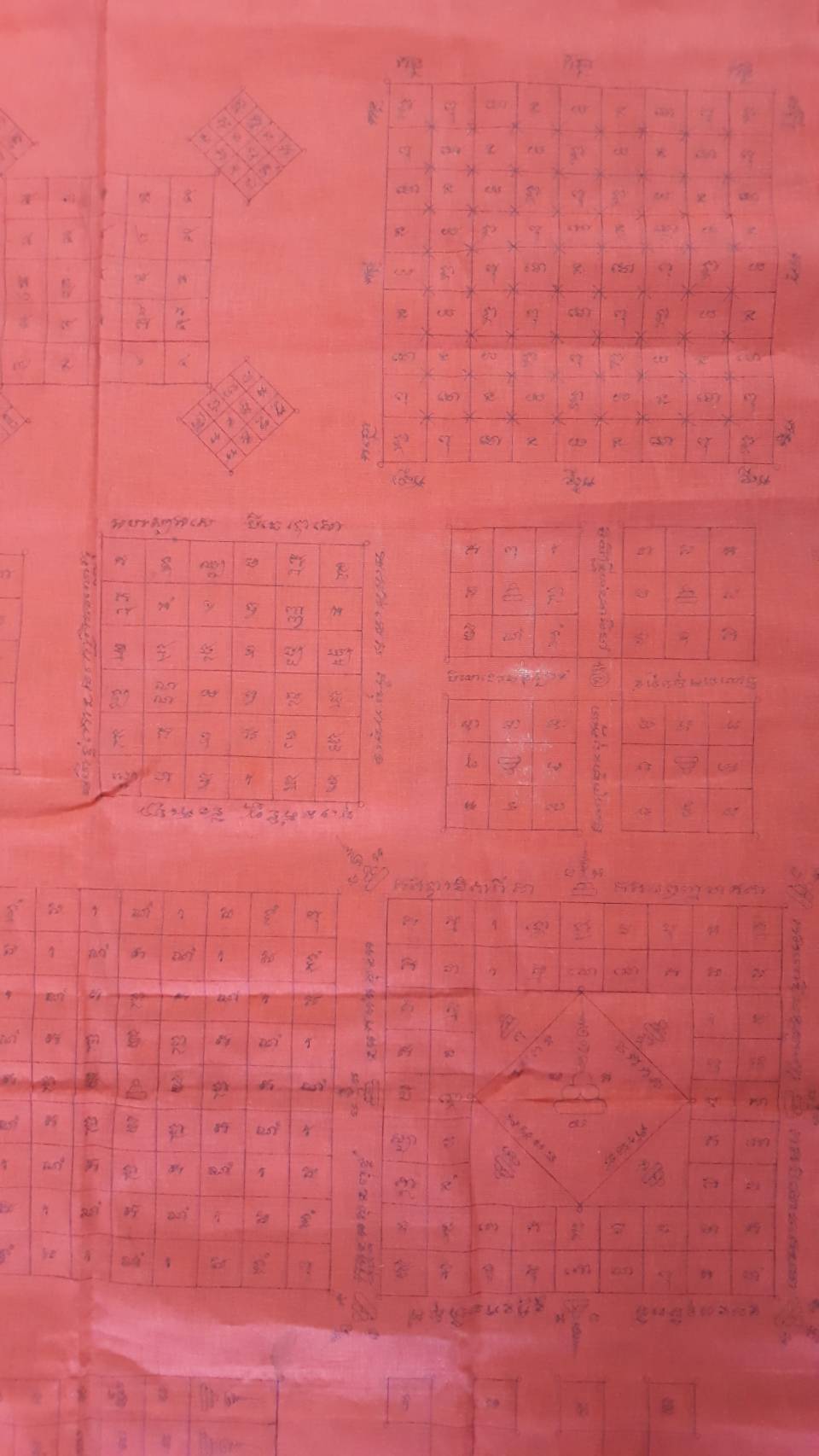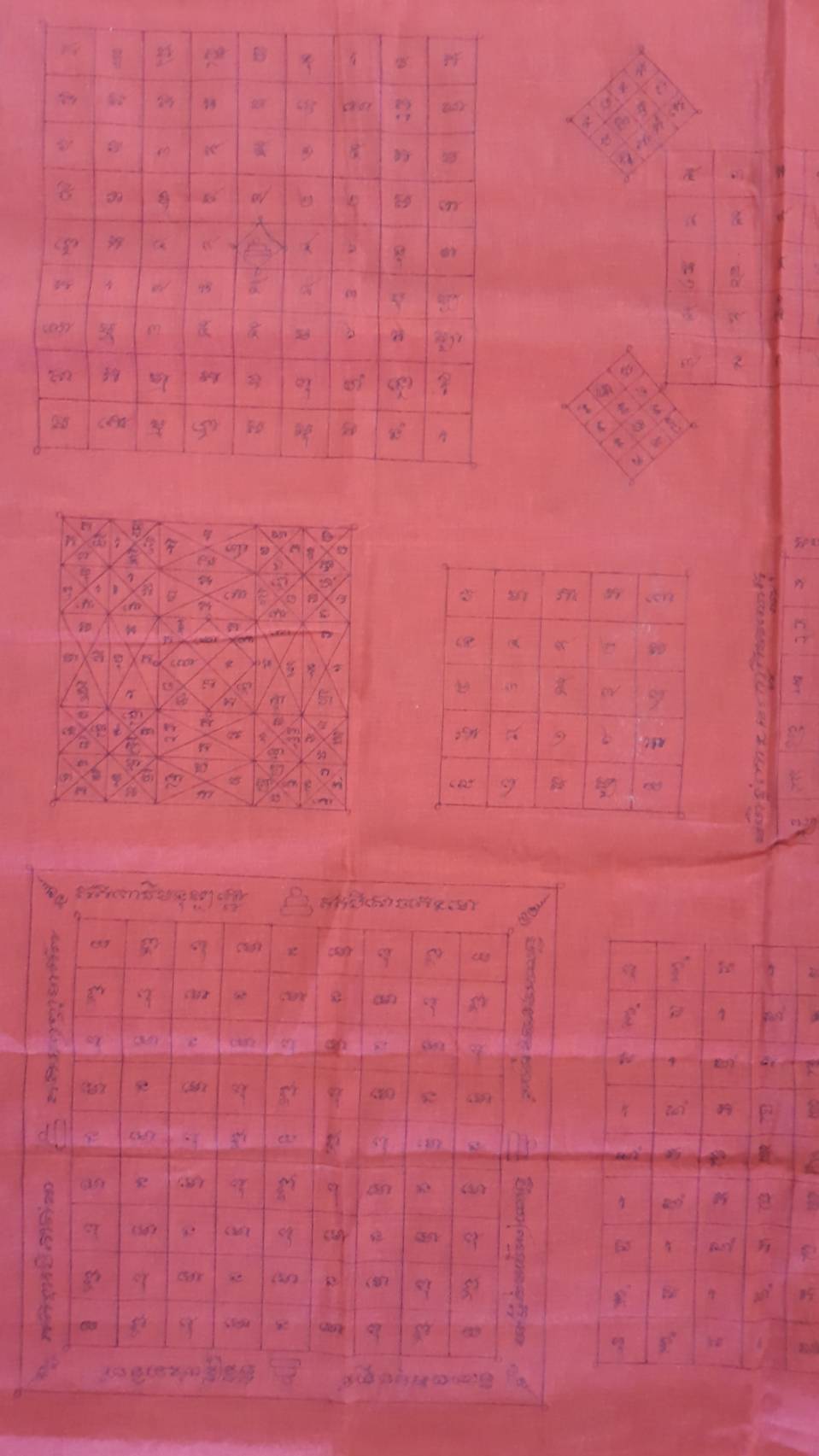 ผ้ายันต์โสฬสมหามงคล(ตำรับเขาอ้อ) อ.ศรีเงิน วัดดอนศาลา(เขียนมือ)