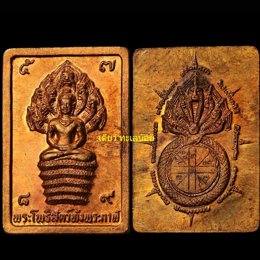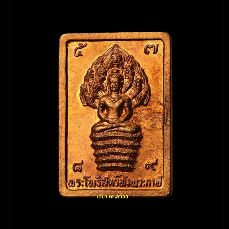 [ รายละเอียด ] เหรียญแสตมป์ปรก7เศียร พระโพธิสัตว์พังพระกาฬ ปี32(รุ่นแรก)บล็อคมุมขีด นิยม (เหรียญดวงดี)หนึ่งในพระสายจตุคามรามเทพยุคแรกๆ : ของดีที่ซ่อนเร้น กับ(องค์พ่อจตุคาม)หลักเมืองนครครีฯ แสตมป์ปรก7เศียรปี32(รุ่นแรก) หนึ่งในวัตถุมงคลสายองค์พ่อจตุคามรามเทพ เป็นอีกเหรียญหนึ่งที่น่าใช้ครับ...เพราะตอนนั้นมีชาวบ้านจะไปเช่าพระหลักเมืองที่ศาลหลักเมือง...มีท่านขุนพันธ์ยืนอยู่พอดี...ชาวบ้านคนนี้เลยถามท่านขุนพันธ์ว่า..บรรดาเหรียญหลักเมืองทั้งหมด..เหรียญไหนดีที่สุด..ท่านขุนพันธ์ก็เลยหยิบเหรียญนี้ขึ้นมา...แล้วพูดว่าเหรียญนี้และดีความหมายของยันต์ข้างหลังดีมาก...ใครแขวนแล้วจะดวงดี.....***ประวัติการสร้างเหรียญจอมนาคราชพังพกาฬ มีรายละเอียดในใบฝอยดังนี้  =========================================**จอมนาคราชพังพระกาฬ  รูปประติมากรรมพระโพธิสัตว์พังพระกาฬ สร้างขึ้นตามตำนานของชาวทะเลใต้ เนื่องในสมัยหลักเมืองศรีวิชัย ๑๒ นักษัตร ประดิษฐานหลักเมืองถาวรเหนือหาดทรายแก้ว เมื่อปีมะโรง พุทธศักราชล่วงมาแล้ว ๒๕๓๑ พรรษา ตามหลักอาถรรพณ์เวทวิทยาแห่งสมมติศาสตร์ พังพระกาฬประทับนั่งภาวนาสมาธิเหนือพญานาคราช ๗ เศียร แผ่พังพาน ประกอบด้วยหัวใจพระคาถา นะโมพุทธายะ และหัวใจอิติปิโส ๑๐๘ ซึ่ง พล.ต.ต.ขุนพันธรักษ์ราชเดช บรมครูเฒ่าชาวชวากะ ลงศาสตราคมอักขระอย่างโบราณ  พระเนื้อโลหะผสม ๙ ชนิด คือ ทอง เงิน นาค ทองแดง ทองเหลือง แร่ ๗ เหมือง ตาปูสรรพตรึง ดาบโบราณ และเหล็กยอดปราสาท ประกอบพิธีกรรมเททอง ณ ศาลหลักเมืองในขณะพระอาทิตย์ตกดิน คณะอาจารย์ผู้ทรงคุณวุฒิ สาธยายหัวพระใจคาถา นั่งปรกปลุกเสกไปจนตลอดพิธี บังเกิดอัศจรรย์ท้องฟ้าปั่นป่วน ลมพัดแรง ฝนตกพรมลงมาเล็กน้อยแล้วหายไป เมื่อได้เวลาอันเป็นมหาฤกษ์ พระจันทร์ทรงจักรเจิดจ้า ๒ ครั้ง เหมือนดังเทวดาฟ้าดินสำแดงเทพนิมิตรับรู้ ประสิทธิประสาทพรชัยในการสืบสร้างสิ่งศักดิ์สิทธิ์เพื่อบ้านเมือง พระจอมนาคราชพังพระกาฬ บรรจงสร้างขึ้นตามอุดมคติศิลปศาสตร์ชาวศรีวิชัย ด้วยฝีมือช่างที่ละเอียดปราณีต งดงามเป็นเลิศ ทั้งด้านหน้าและด้านหลัง จารึกวิชาอาคมขลังตามหลักไสยศาสตร์ทะเลใต้ ว่าด้วยความรอบรู้ ดิน เดือน ดาว จตุโลกธาตุ อันจะบันดาลให้ผู้ที่มีไว้บังเกิดแต่ความเป็นศิริมงคลสูงสุด คุ้มครองป้องกันสรรพอันตรายทั้งปวง หากตั้งจิตอธิษฐานขอให้การค้าขาย ทำเรือกสวนไร่นา หากินทางประมง ทำมาหาได้ดีมีกำไร ย่อมได้รับผลสมประสงค์ด้วยพญานาคราช เปรียบดังสัญลักษณ์แห่งความสมบูรณ์พูนสุขในการทำมาหากิน พระโพธิสัตว์พังพระกาฬ ช่วยป้องกันอุบั
