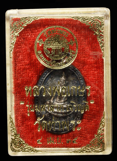 [ รายละเอียด ] เหรียญหลวงพ่อเกษร วัดท่าพระ เนื้อเงิน บล็อกวงเดือน รุ่นมหาลาภ เจริญดี ปี 2535 พร้อมกล่องเดิมๆ เช่ามาจากวัดครับ สุดยอดหายาก สุดยอดประสบการณ์ สภาพไม่เคยใช้มาก่อนครับ เหรียญหลวงพ่อเกษร วัดท่าพระ จัดสร้างกันมาหลายรุ่น แต่ที่ได้รับความนิยมมากที่สุด ได้แก่ รุ่นแรก รุ่นสองและรุ่นสาม ด้วยมีความเชื่อกันว่า หลวงปู่โต๊ะ วัดประดู่ฉิมพลี กรุง เทพฯ, หลวงพ่อฑูรย์ วัดโพธิ์นิมิต ตลาดพลู กรุงเทพฯ, หลวงพ่อเจ้าคุณพระทักษิณคณิสร วัดอินทรารามใต้ กรุงเทพฯ, หลวงพ่อโชติ วัดตะโน พร้อมด้วยพระเกจิอีกมากมาย ปลุกเสก ผู้ที่ได้บูชาเหรียญหลวงพ่อเกษร ร่ำลือกันว่า มีพุทธคุณโดดเด่นด้านเมตตามหานิยมและแคล้วคลาดอันตรายเป็นที่สุด พ่อค้าแม่ค้ารุ่นเก่าย่านตลาดพลู เขตท่าพระ ต่างบอกเป็นเสียงเดียวกันว่า ใครมีเหรียญหลวงพ่อเกษร วัดท่าพระ ทำมาค้าขึ้นทุกคน วัดเกาะท่าพระ มีพระพุทธรูปศักดิ์สิทธิ์อยู่องค์หนึ่ง มีความเป็นมาที่มืดมนเช่นเดียวกับประวัติของวัด มีชื่อเรียกขานกันว่า "หลวงพ่อเกษร" คำเล่าขานถึงพระพุทธรูปองค์นี้ กล่าวว่าเป็นพระพุทธรูปที่ลอยน้ำมา เมื่อครั้งวัดยังมีลำน้ำไหลผ่านทั้งด้านทิศใต้ และทิศตะวันตก และวัดยังคงตั้งอยู่บนเกาะใหญ่ ลำคลองที่พระพุทธรูปลอยมาติดอยู่ และชาวบ้านได้อัญเชิญขึ้นมาประดิษฐาน ณ พระวิหารวัดท่าพระ เมื่อวันขึ้น 14 ค่ำ เดือน 5 ถูกเรียกขานว่า คลองท่าพระ และบริเวณท่าที่อาราธนาพระพุทธรูปขึ้นมาประดิษฐาน เรียกกันว่า ท่านพระ มาตราบทุกวันนี้ ชาวท่าพระถือว่าเป็นมิ่งขวัญหลักใจ เป็นที่พึ่งทางใจอย่างดีมานาน จนมีประ เพณีงานแห่ผ้าไตรถวายหลวงพ่อเกษร ในวันขึ้น 14 ค่ำ เดือน 5 ของทุกปี หลวงพ่อเกษร เป็นพระพุทธรูปปางมารวิชัย ศิลปะผสมระหว่างสุโขทัยตอนปลายกับอยุธยาตอนต้น มีพุทธลักษณะที่งดงามยิ่งนัก ขนาดหน้าตักกว้าง 40 นิ้ว สูงจากปลายรัศมีถึงทับเกษตร 63 นิ้ว ประทับนั่งขัดสมาธิราบบนอาสนะฐานสิงห์ 3 ชั้น บัวหงาย 5 ชั้น หายากน่าเก็บน่าใช้ละครับ