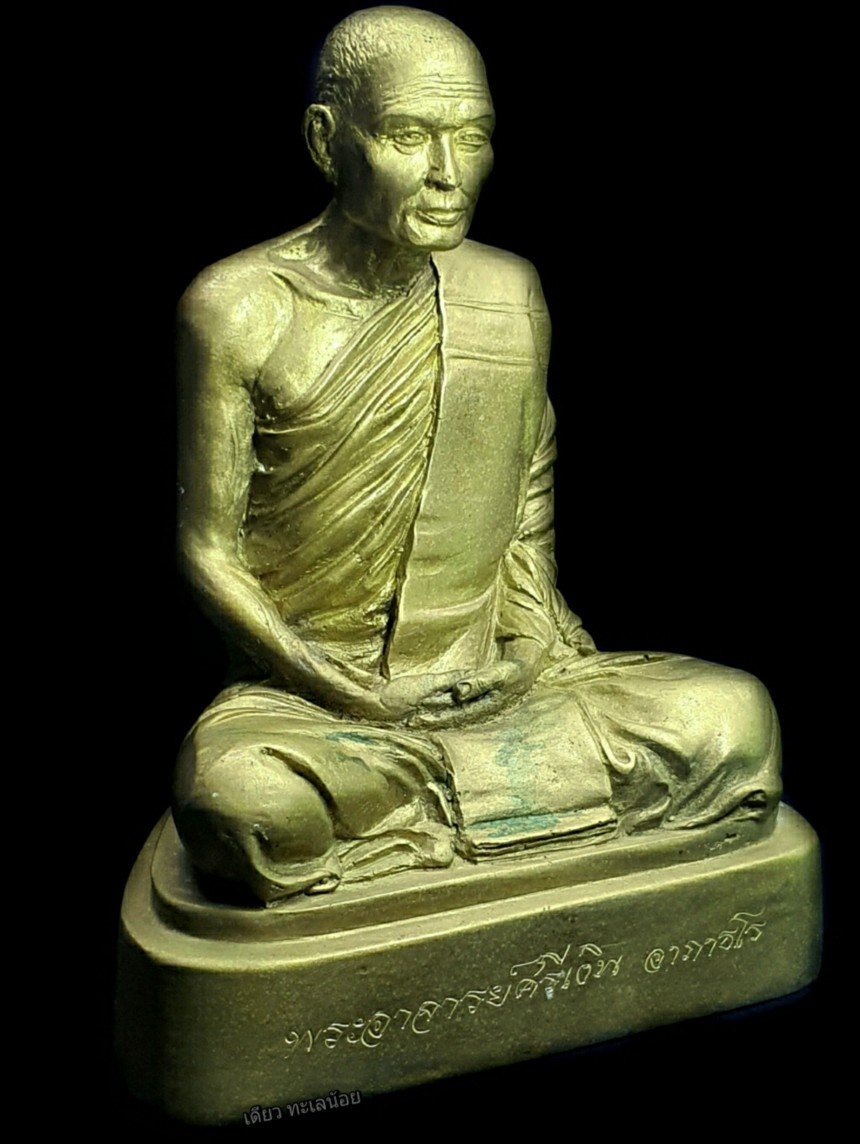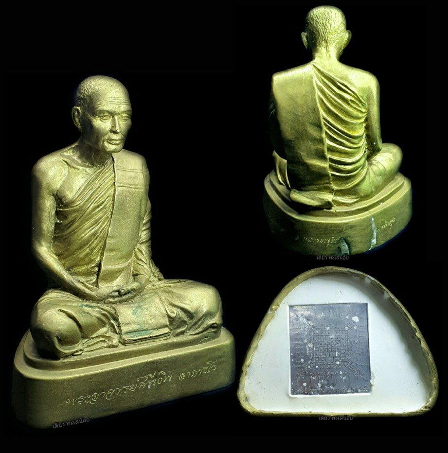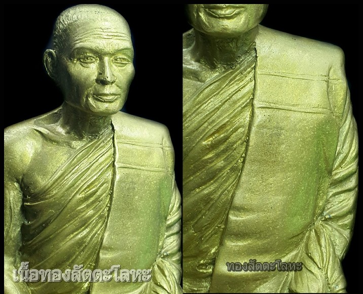 [ รายละเอียด ] พระรูปเหมือนบูชา อ.ศรีเงิน อาภาธโร วัดดอนศาลา จ.พัทลุง รุ่นแรก พีธีไหว้ครู๕๗ เนื้อทองสัตตะโลหะ ขนาด5.3นิ้ว จัดสร้างแค่70องค์ องค์นี้no.54 **พระบูชาอาจารย์ศรีเงิน รุ่นแรกทั้งหมด มีการสร้างไว้หลายเนื้อแต่ละเนื้อสร้างไว้จำนวนน้อยมากๆ อาธิเช่น *1.พระบูชาอ.ศรีเงิน "เนื้อมหาชนวนนำฤกษ์" สร้าง85องค์ *2.พระบูชาอ.ศรีเงิน "เนื้อนวะโลหะ" สร้าง70องค์ ***3.พระบูชาอ.ศรีเงิน "เนื้อทองสัตตะโลหะ" สร้าง70องค์ ***4.พระบูชาอ.ศรีเงิน "เนื้อทองเหลืองรมมันปู"สร้าง199องค์**5.พระบูชาอ.ศรีเงิน "เนื้อทองเหลืองรำดำ" สร้าง199องค์**6.พระบูชาอ.ศรีเงิน "เนื้อเรซิ่นลงสี"สร้าง399องค์ ในแต่ละเนื้อขององค์พระจะฝังแผ่นยันต์โสฬสชาตกาลและเหรียญอ.นำ ชาตกาล และการเขียนตรงที่ฐานในแต่ละเนื้อนั้นจะแตกต่างกันออกไปและตอกโค๊ตกับนับเบอร์จำนวนขององค์พระไว้ในแผ่นยันต์หรือเหรียญพระที่ฝังไว้ใต้ฐานทุกอัน****ทองสัตตะโลหะและทองมหาสัตตะโลหะนั้นมีความแตกต่างกันอย่างไร****จากที่ได้ข้อมูลมาว่าเนื้อทองสัตตะโลหะและเนื้อทองมหาสัตตะโลหะ มีความแตกต่างเพียงเล็กน้อย และ2สูตรนี้เป็นโลหะผสมที่หล่อยากมากๆและทำยากจริงๆจึงไม่ค่อยมีใครทำกันเลย///หลังจากอาจารย์ศรีเงิน อาภาธโร วัดดอนศาลาได้มรณะภาพไปแล้วนั้นก็ไม่มีอาจารย์ท่านใดได้สืบทอดวิชานี้และสร้างอีกเลยแต่ตำรานี้สูตรการผสมโลหะนั้นยังมีอยุ่ในตำราเขาอ้อนั้นการผสมโลหะที่เป็นโลหะ7ชนิดหรือเรียกว่าสัตตะโลหะ(สัตตะหมายถึง7)ในตำราของสำนักเขาอ้อนั้น จากที่ได้ศึกษามานั้นจะมีอยุ่ด้วยกัน2แบบ *1.วิชาโลหะผสมใช้โลหะผสมด้วยกัน7ชนิดที่เรียกกันกันว่า สัตตะโลหะหรือทองสัตตะโลหะ สูตรเขาอ้อ **2.วิชาเล่นแร่แปรธาตุ ทองมหาสัตตะโลหะ(ทองกายสิทธิ์) ใช้โลหะ7ชนิดเหมือนกับการผสมเนื้อสัตตะโลหะแต่ทองมหาสัตตะโลหะนั้นจะนำโลหะทั้ง7นั้นหลอมซ้ำๆด้วยกันทั้งหมดไห้ไห้ได้ทั้งหมด7ครั้งและต้องมีว่านยาตามตำราเป็นตัวประสานด้วยกัน เช่น ว่านทองบ้านงอกได้และรากเหล็กส่องแสงยามราตรี เป็นวิชาเเร่แปรธาตุชั้นสูงของสำนักเขาอ้อ ที่เรียกกันว่า มหา มหาคือสุดยอดของวัตถุนั้นๆ "ทองมหาสัตตะโลหะ"จะต่างกับเนื้อสัตตะโลหะหรือทองสัตตะโลหะ แต่ในส่วนพุทธคุณนั้นตำราพรรณนาคุณวิเศษไว้เหมือนกันต่างกันเพียงเล็กน้อย เพราะใช้โลหะเหมือนกันทุกอย่าง เพียงจะต่างแค่ขั้นตอนกรรมวิธีใน น้ำหนักของมวลสารโลหะต่างๆ ของการหลอมในแต่ละสูตรเท่านั้นเองและเนื้อหาก็มีความคล้ายคลึงกันต่างกันเพียงเล็กน้อย เนื้อสัตตะโลหะนั้นเนื้อหาจะออกสีเหลืองออกทองอุ่นๆนวลๆเนื้อในจะมีประกายท