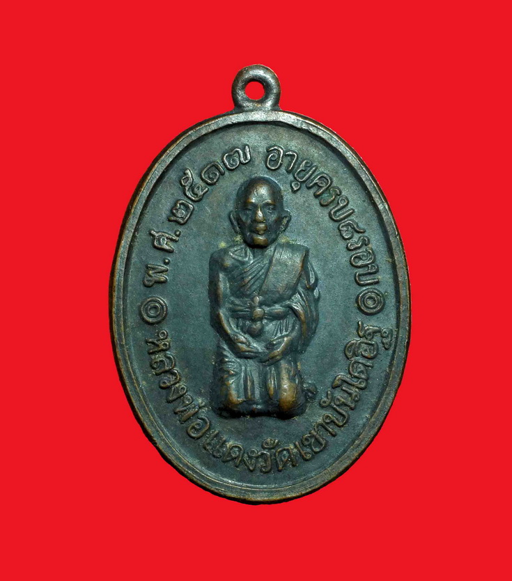 [ รายละเอียด ] เนื้อทองแดงรมดำ สภาพสวยหิ้งๆ เหรียญคุกเข่า "หลวงพ่อแดง" หรือ "พระครูญาณวิลาศ" วัดเขาบันไดอิฐ รุ่นสุดท้าย ปี 2517 เหรียญรุ่นนี้หลวงพ่อแดง ท่านสร้างปี 2516 เพื่อทำแจกในวันคล้ายวันเกิด ครบ 8 รอบ ปี 2517 แต่ท่านมรณะภาพเสียก่อน เหรียญนี้จึงเป็นเหรียญสุดท้ายที่หลวงพ่อปลุกเสก และเป็นเหรียญที่มีการสร้างมากที่สุดในบรรดาเหรียญของหลวงพ่อแดง โดยด้านหน้ามีหลายบล็อก ส่วนด้านหลังมี 2 บล็อก เป็นบล็อกธรรมดากับบล็อกทองคำ .. วัตถุมงคลของหลวงพ่อแดง ล้วนเด่นชัดด้านพุทธคุณ/ ประสบการณ์เป็นที่ประจักษ์