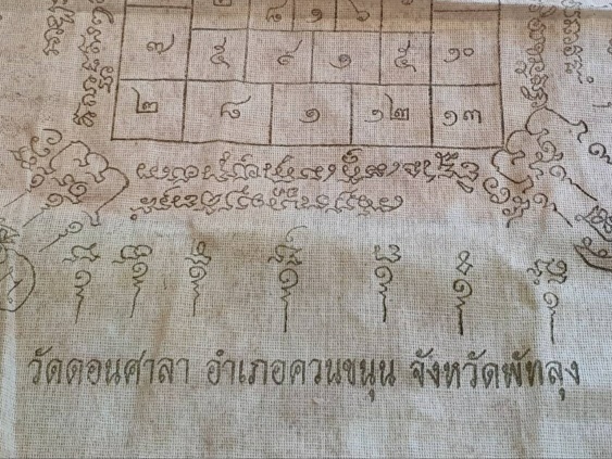 [ ชื่อพระ ] ผ้ายันต์โสฬสมหามงคล(ตำรับเขาอ้อ) อ.ศรีเงิน วัดดอนศาลา จ.พัทลุง รุ่นแรก