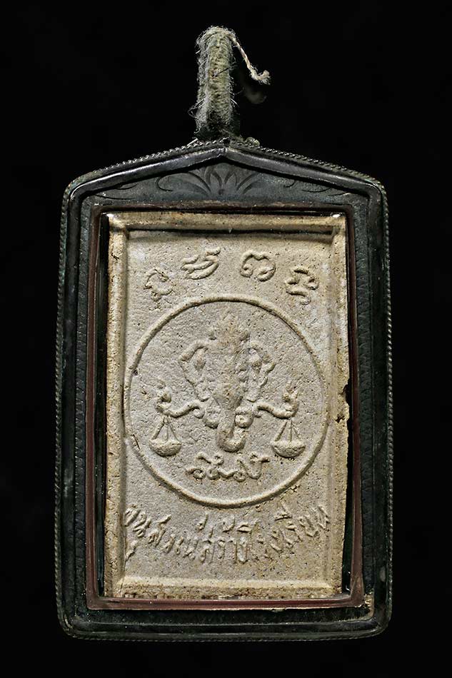 ด้านหลังของพระสมเด็ขฐานสิงห์ กับพระผงรูปเหมือน และเหรียญ เป็นรูปตราชั่ง อันเป็นสัญลักษณ์ของผู้มีราศีเกิดในเดือนตุลาคม คือราศีของสมเด็จญาณสังวร